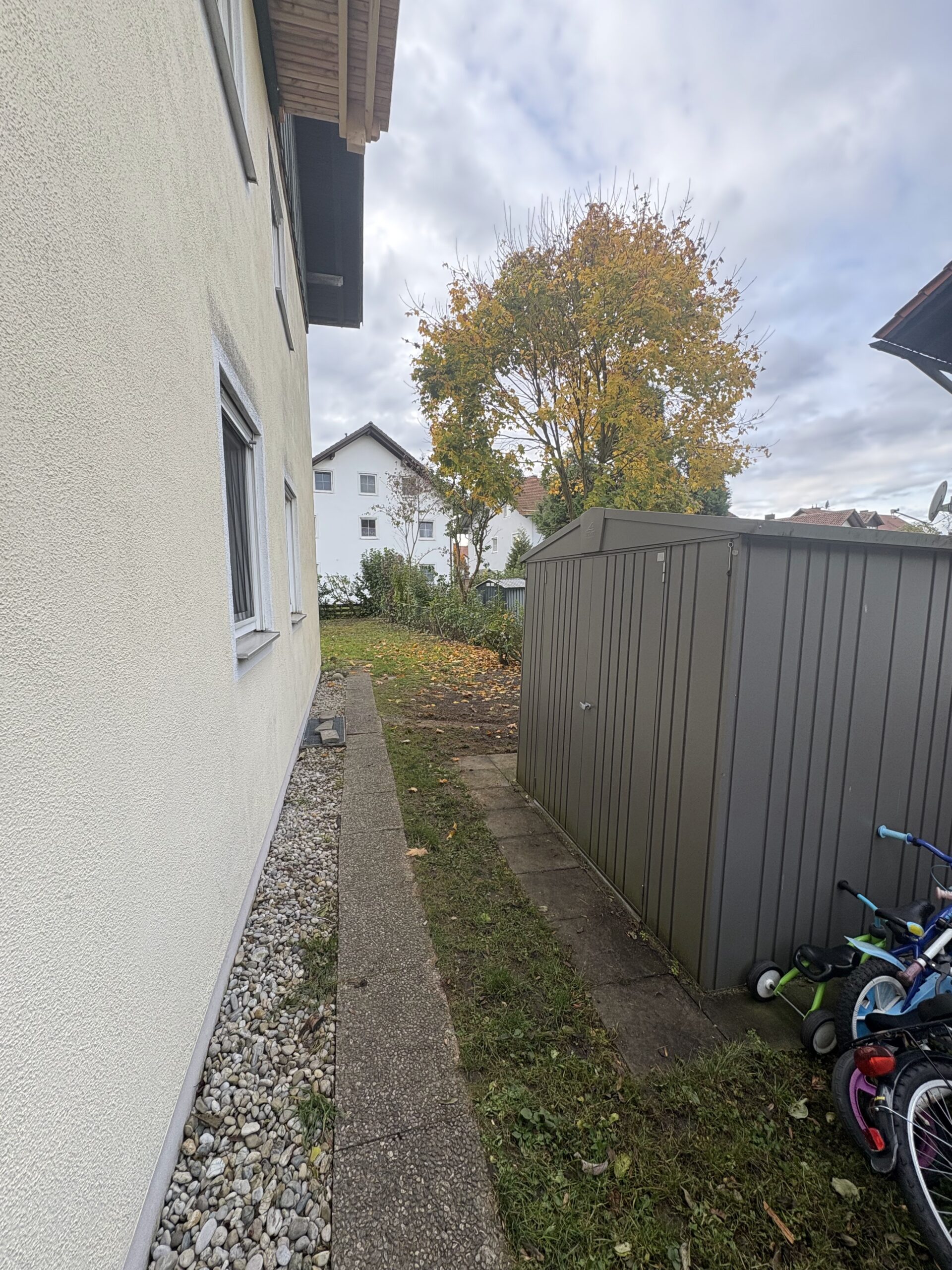 Ein praktischer, abschließbarer Gartenschuppen schafft zusätzlichen Platz für Gartengeräte, Fahrräder oder Gartenmöbel. Das großzügige Tageslichtbad verfügt über eine Duschwanne, einem Waschbecken und ein WC. Ebenso finden Sie hier einen Anschluss für eine Waschmaschine und einen Trockner.