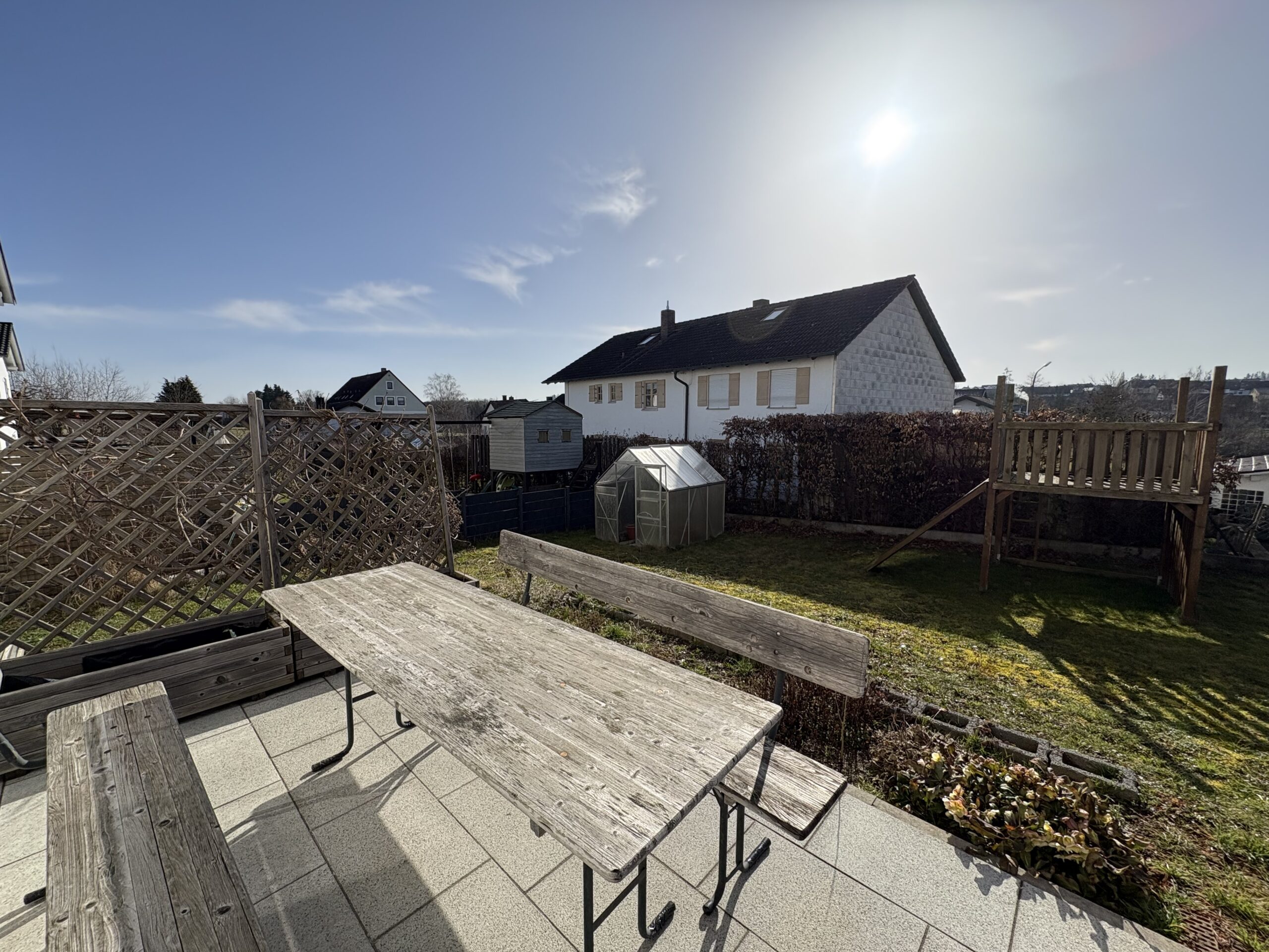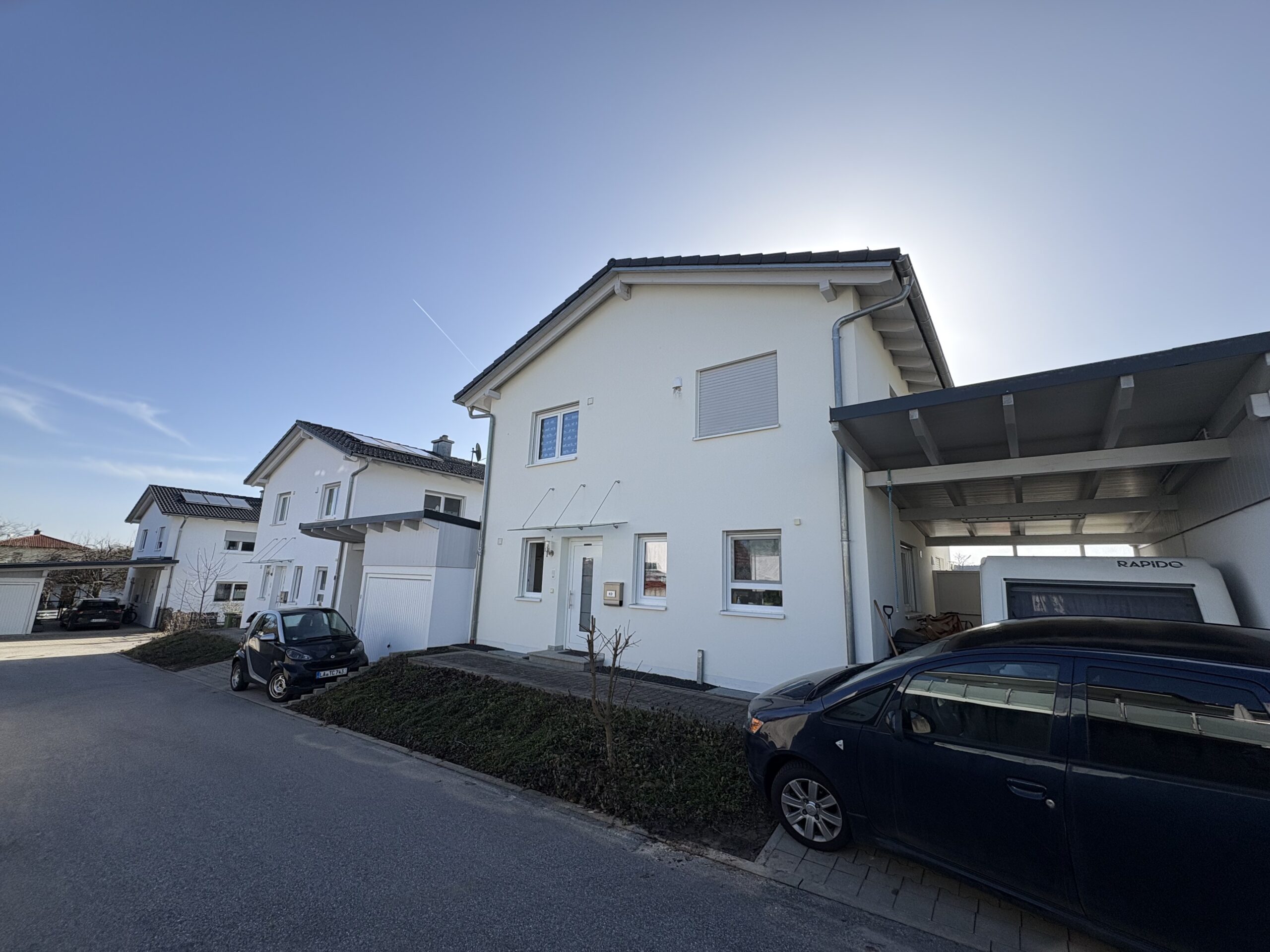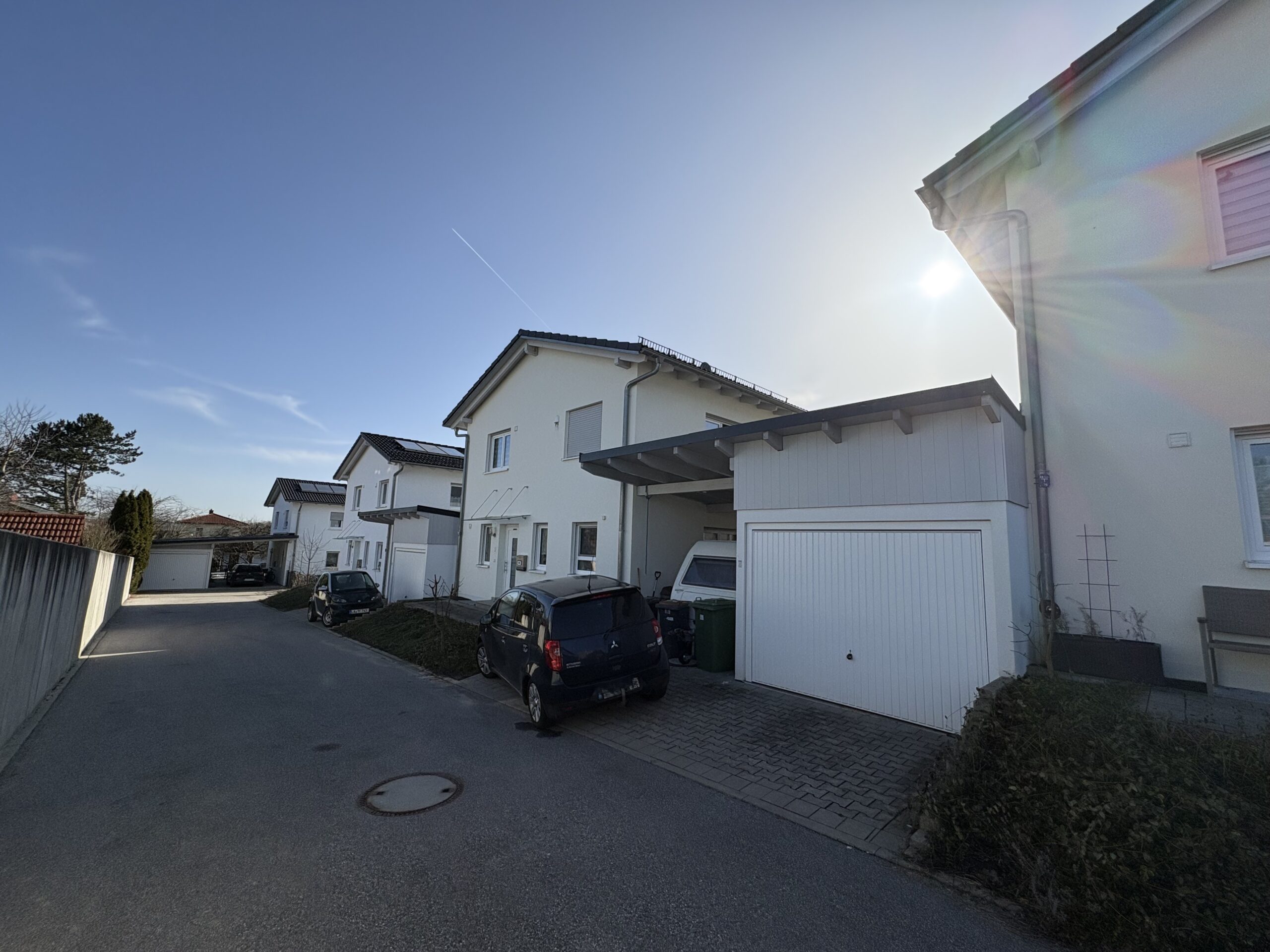 Beheizt wird die Immobilie über eine effiziente Gas-Brennwerttherme, ergänzt durch eine Solaranlage zur Brauchwassererwärmung. Eine Garage sowie ein zusätzlicher überdachter Stellplatz runden dieses attraktive Angebot ab.