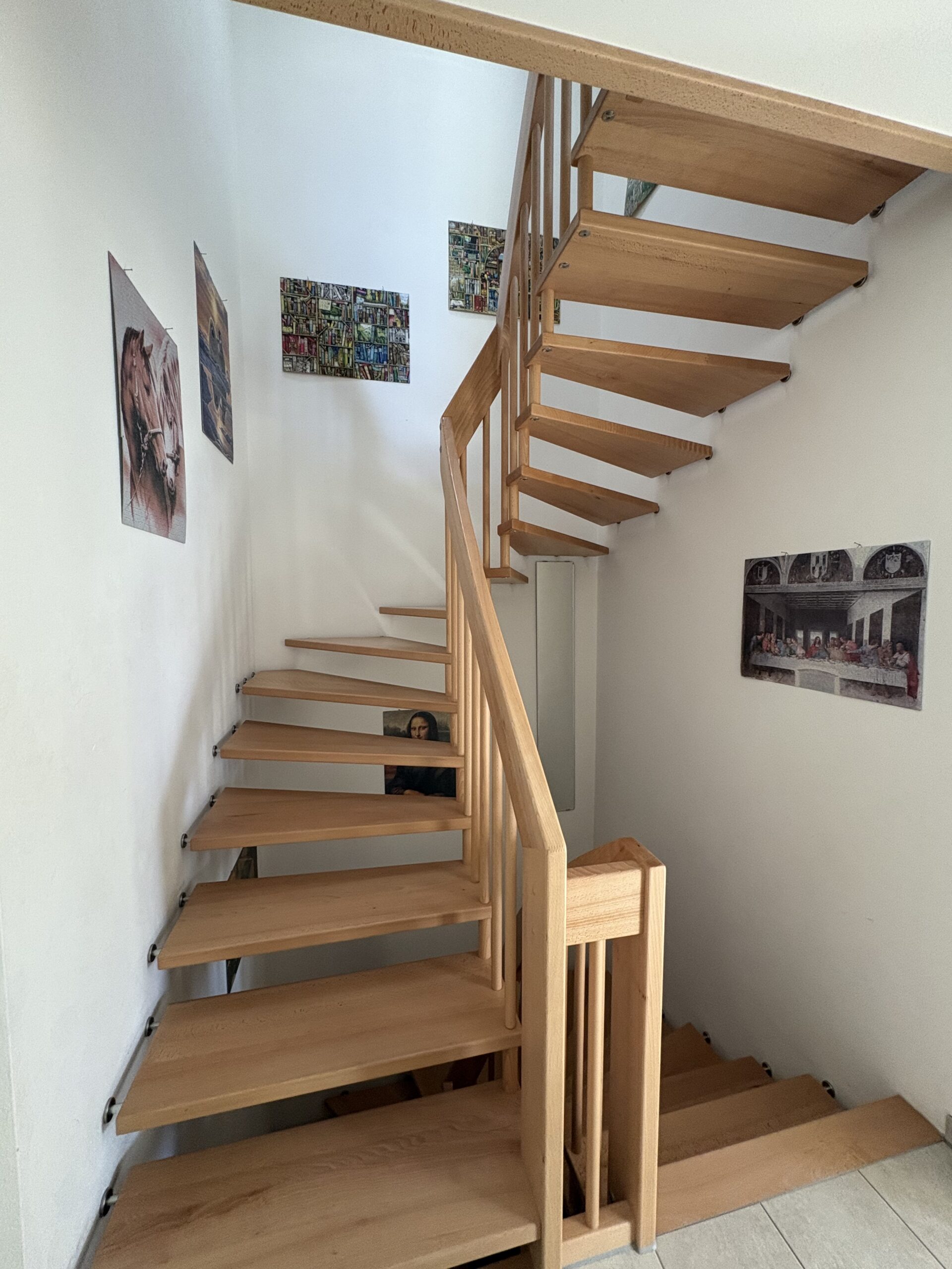 Über eine hochwertige Echtholztreppe gelangen Sie in das Obergeschoss. Hier erwarten Sie drei helle Schlafzimmer sowie ein großzügiges Tageslichtbad mit bodengleicher Dusche, Badewanne und zwei Waschbecken.