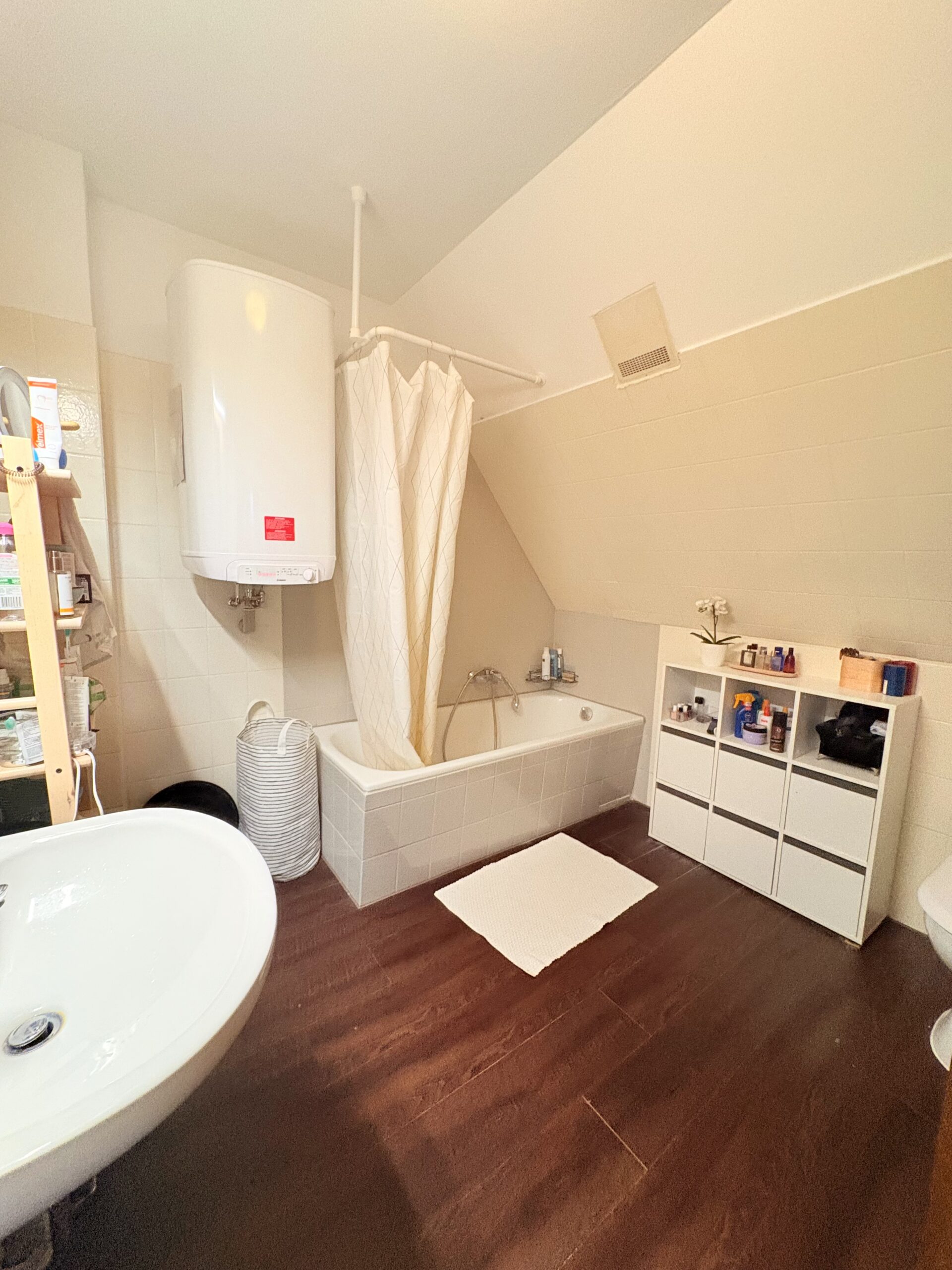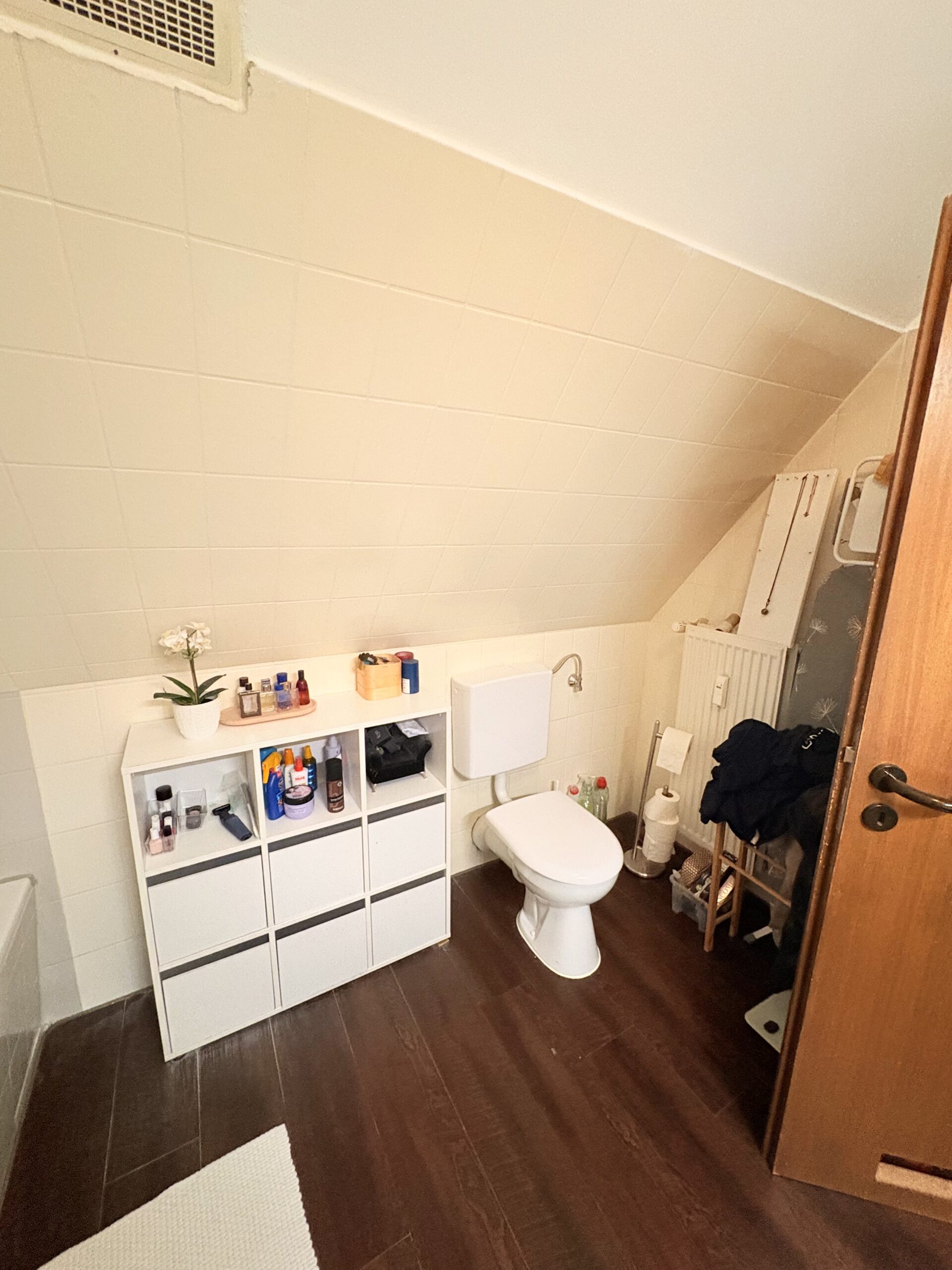 Das obere Geschoss der Maisonettewohnung verfügt über zwei weitere Schlafräume sowie ein geräumiges Badezimmer, das sowohl mit einer Dusche als auch mit einer Badewanne ausgestattet ist. Zudem bietet das Bad ausreichend Platz für eine Waschmaschine und einen Trockner. Ein eigenes Kellerabteil rundet das Angebot ab und sorgt für zusätzlichen Stauraum.