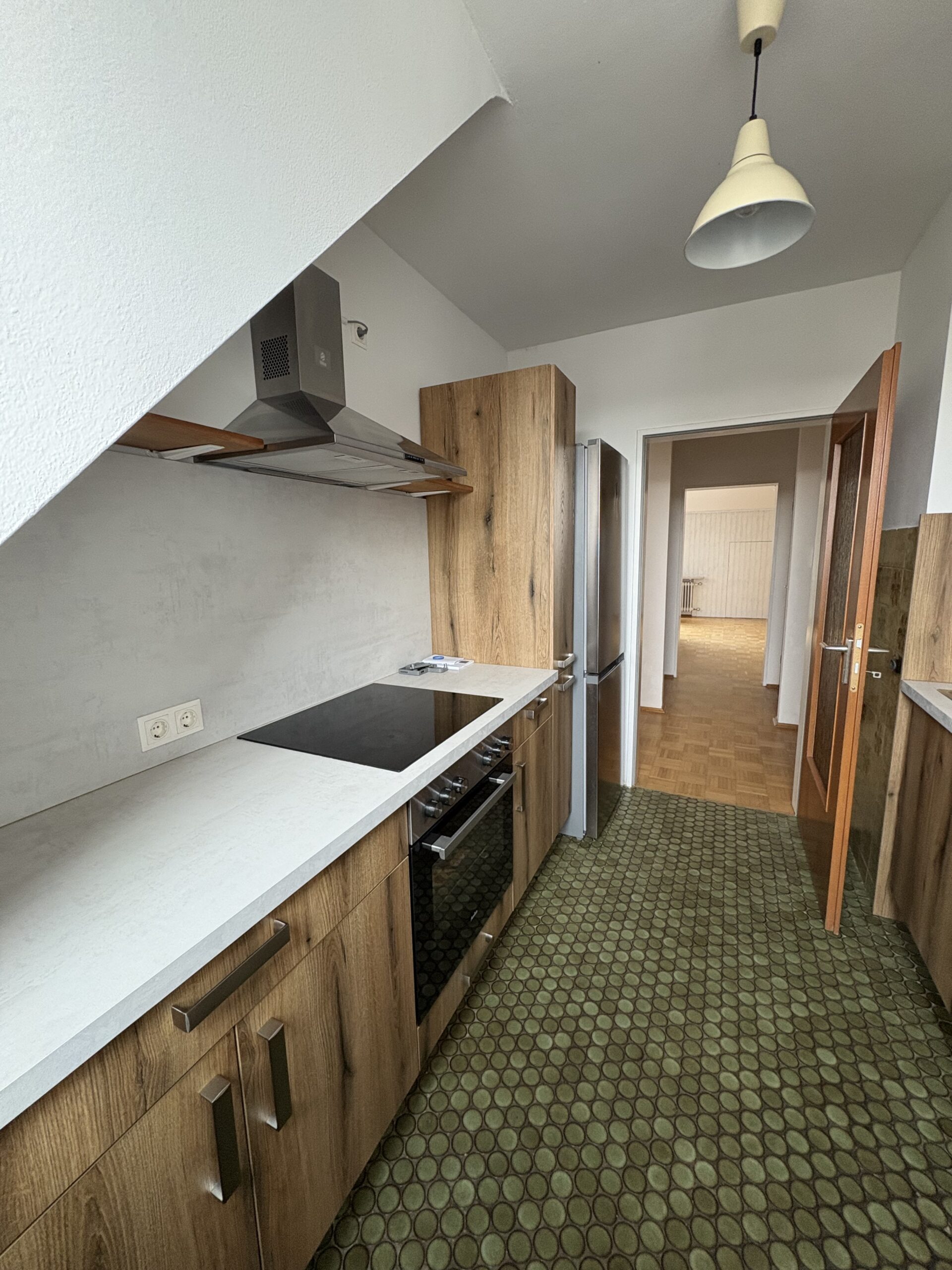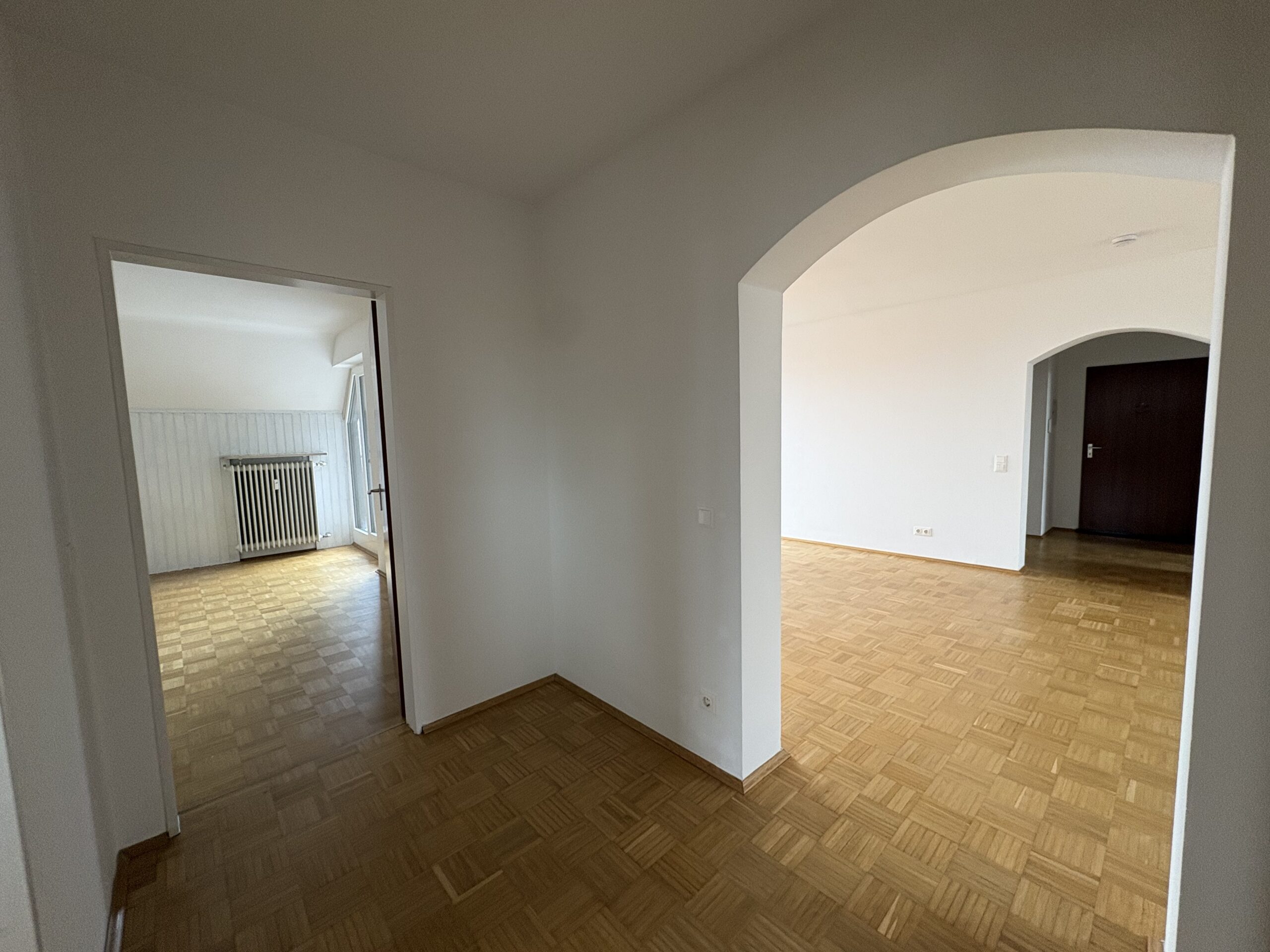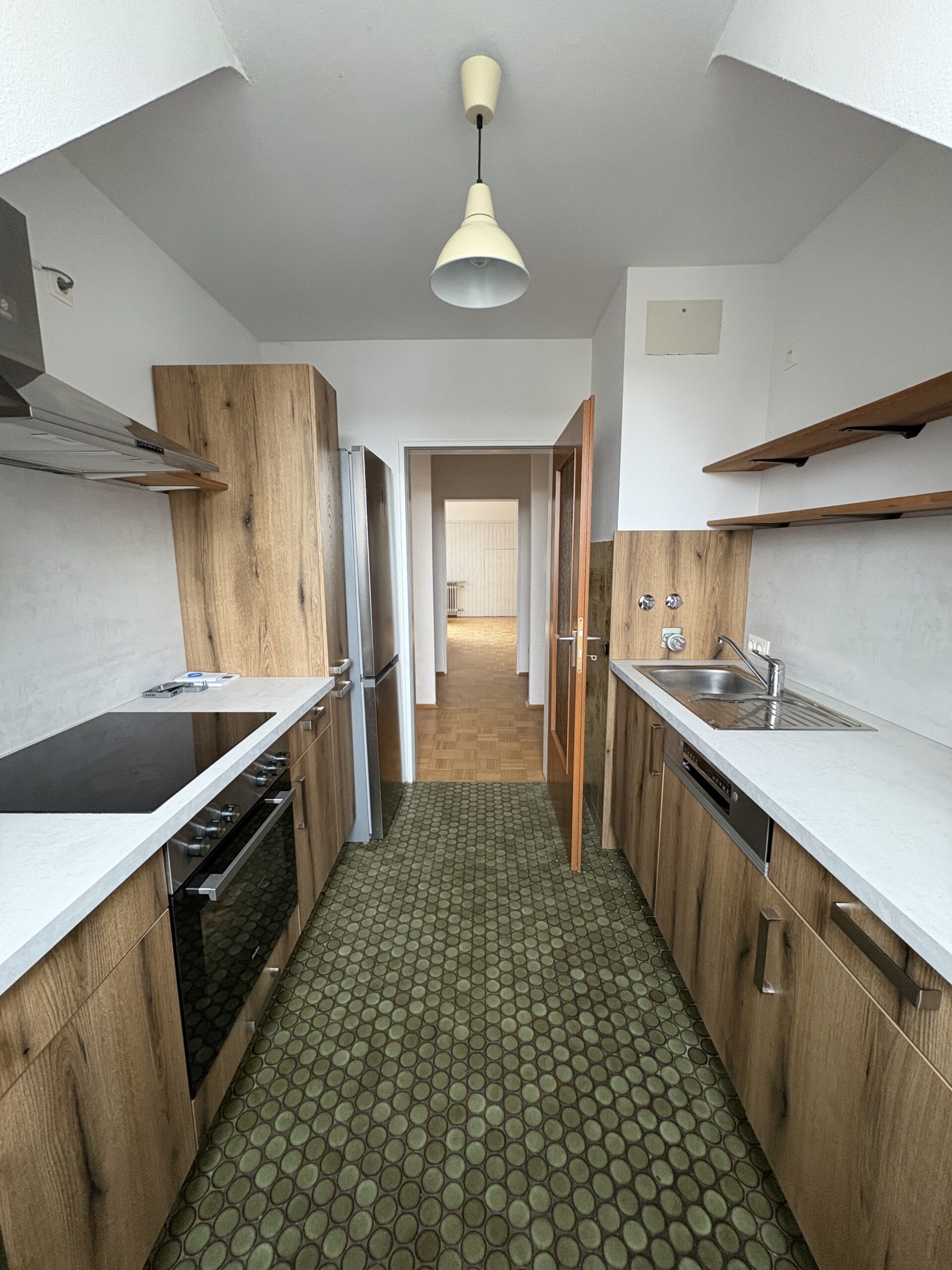 Vom Eingangsbereich gelangen Sie zunächst in eine separate Garderobe mit angrenzendem Gäste-WC. Die Wohnung verfügt über drei Schlafräume, ein komfortables Badezimmer, einen großzügigen Wohn- und Essbereich sowie eine separate Küche. Die vorhandene, erst vor rund zwei Jahren installierte Einbauküche befindet sich in sehr gepflegtem Zustand und ist Bestandteil der Wohnung.