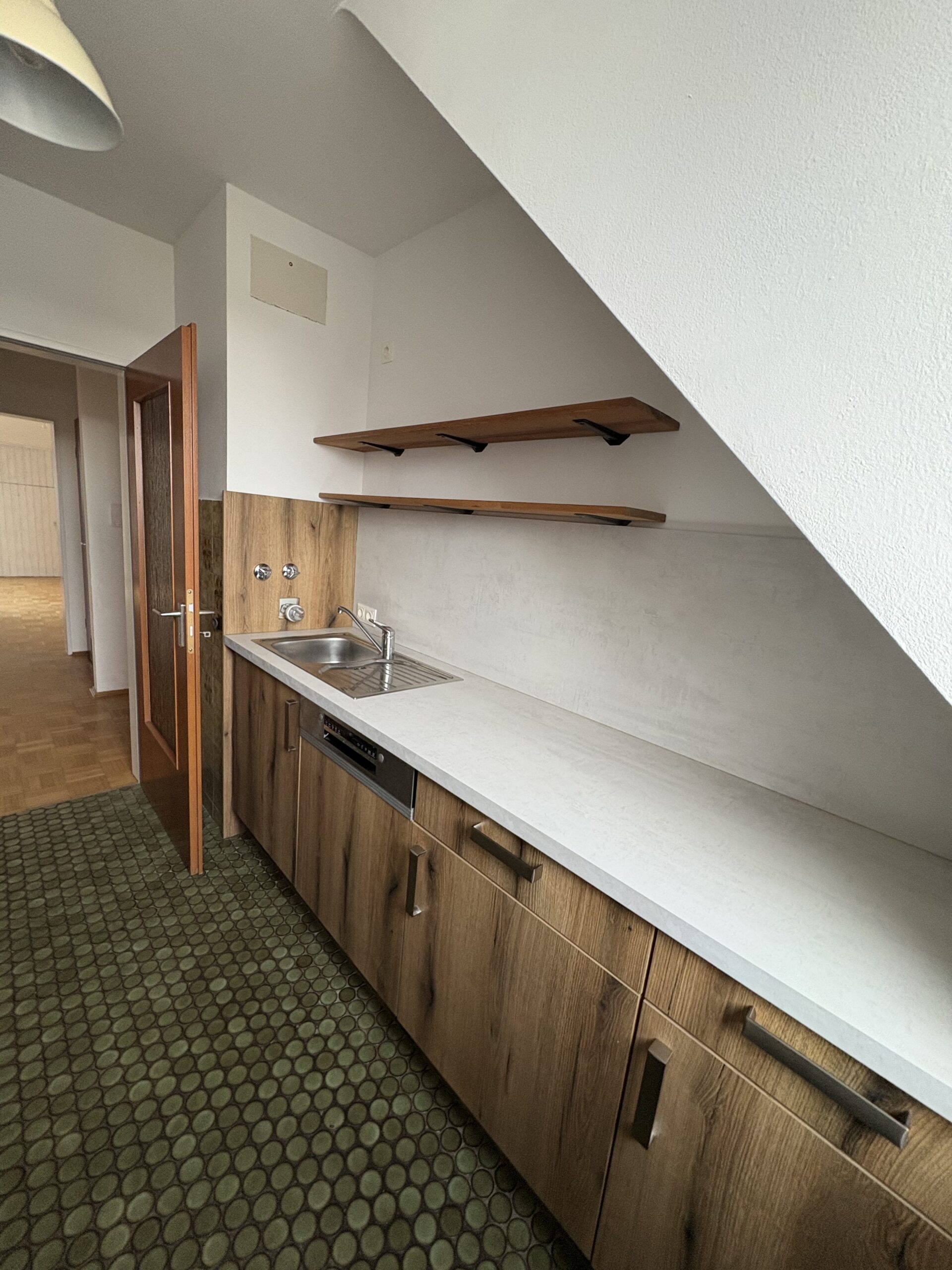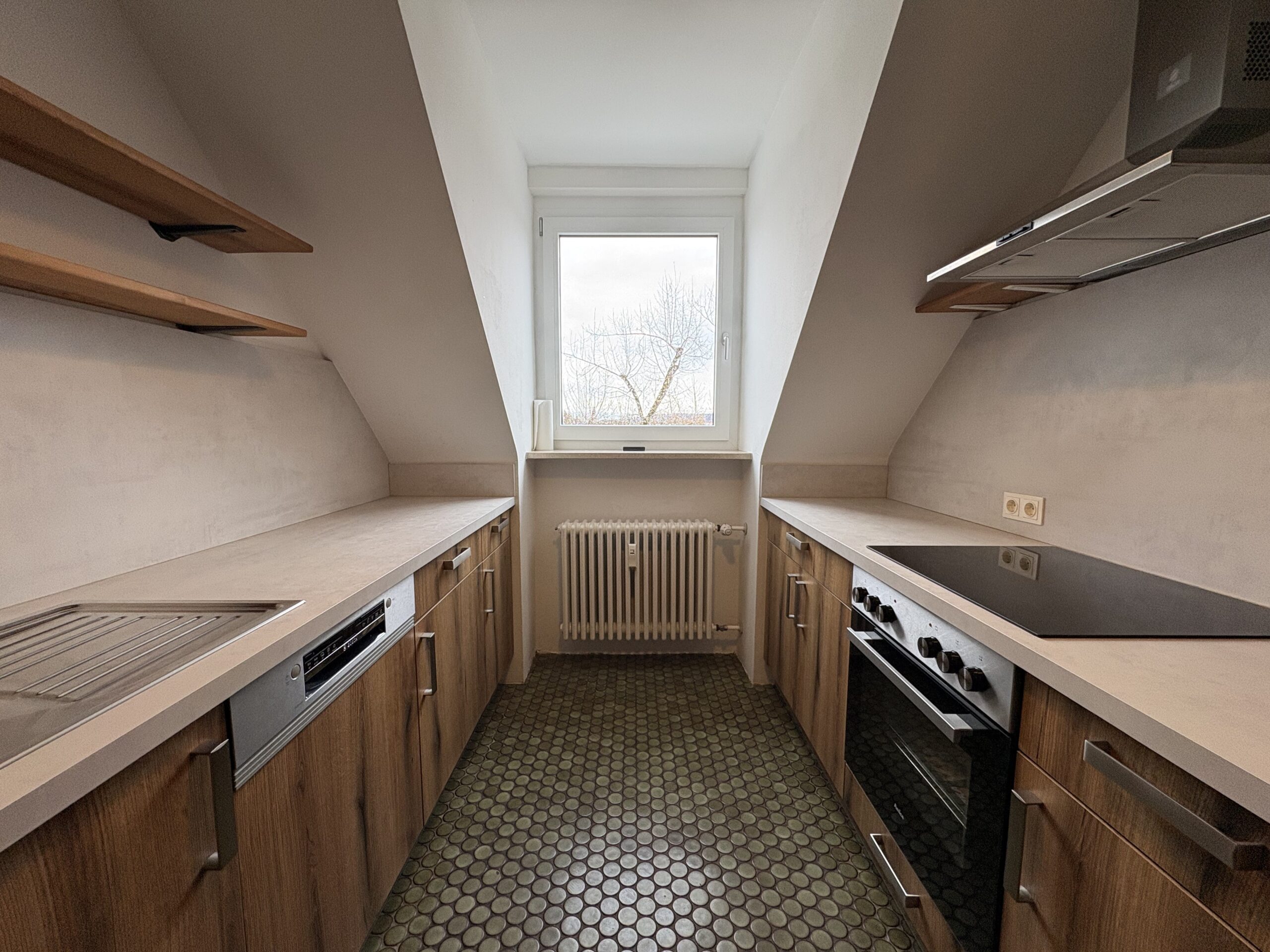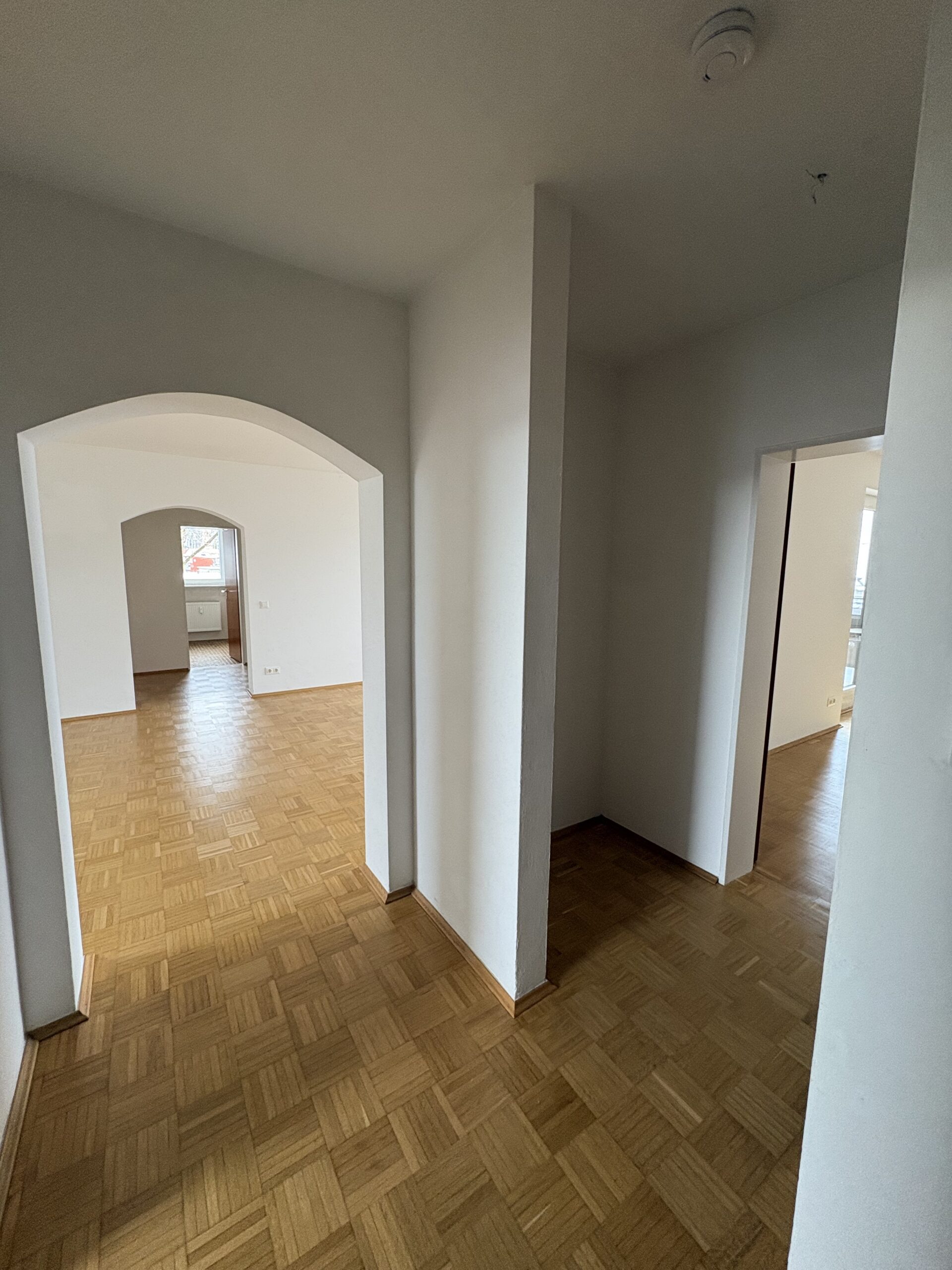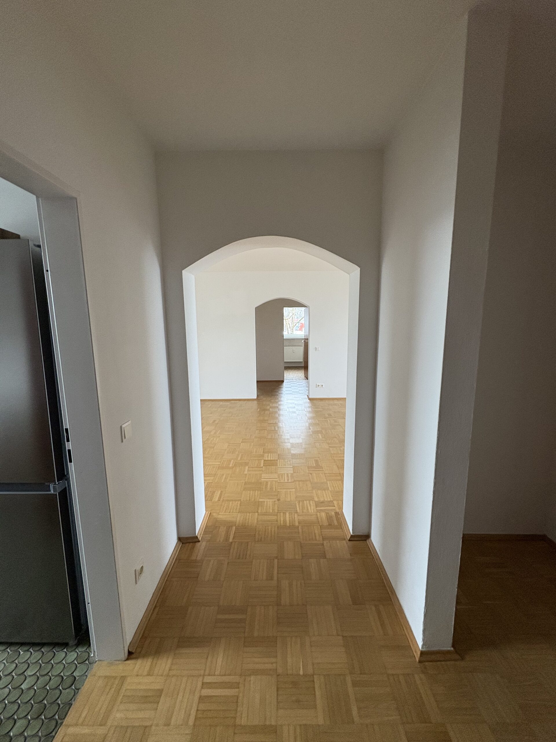 Vom Eingangsbereich gelangen Sie zunächst in eine separate Garderobe mit angrenzendem Gäste-WC. Die Wohnung verfügt über drei Schlafräume, ein komfortables Badezimmer, einen großzügigen Wohn- und Essbereich sowie eine separate Küche. Die vorhandene, erst vor rund zwei Jahren installierte Einbauküche befindet sich in sehr gepflegtem Zustand und ist Bestandteil der Wohnung.