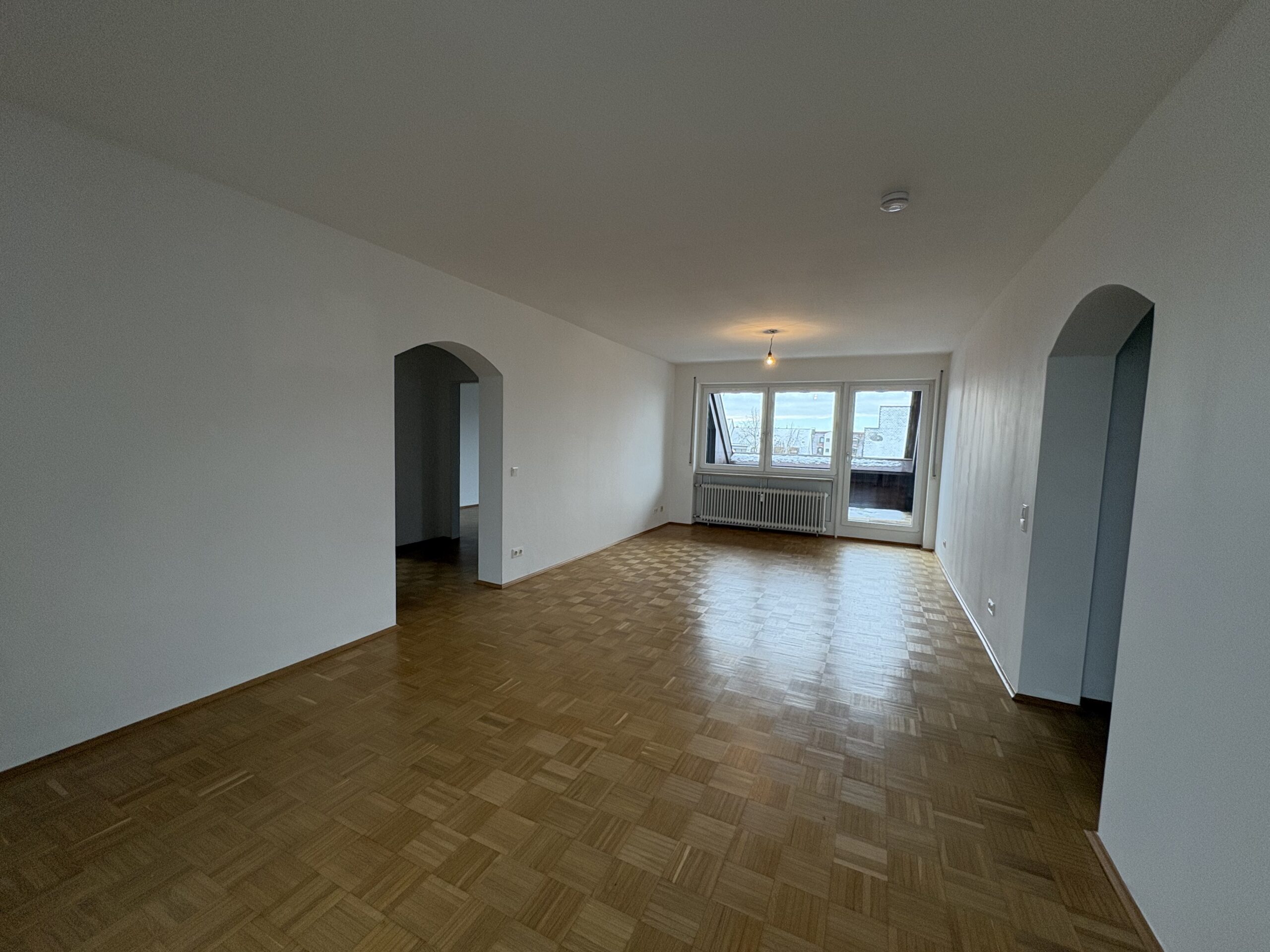 In zentraler und dennoch ruhiger Lage von Landshut befindet sich diese charmante 4-Zimmer-Wohnung im 5. Obergeschoss eines gepflegten Mehrfamilienhauses. Auf ca. 102 m² Wohnfläche bietet Ihnen diese Wohnung eine gute Raumaufteilung mit teilüberdachter, nicht einsehbarer Dachterrasse. Ein Aufzug erleichtert den Zugang und führt bequem bis ins 4. Obergeschoss.