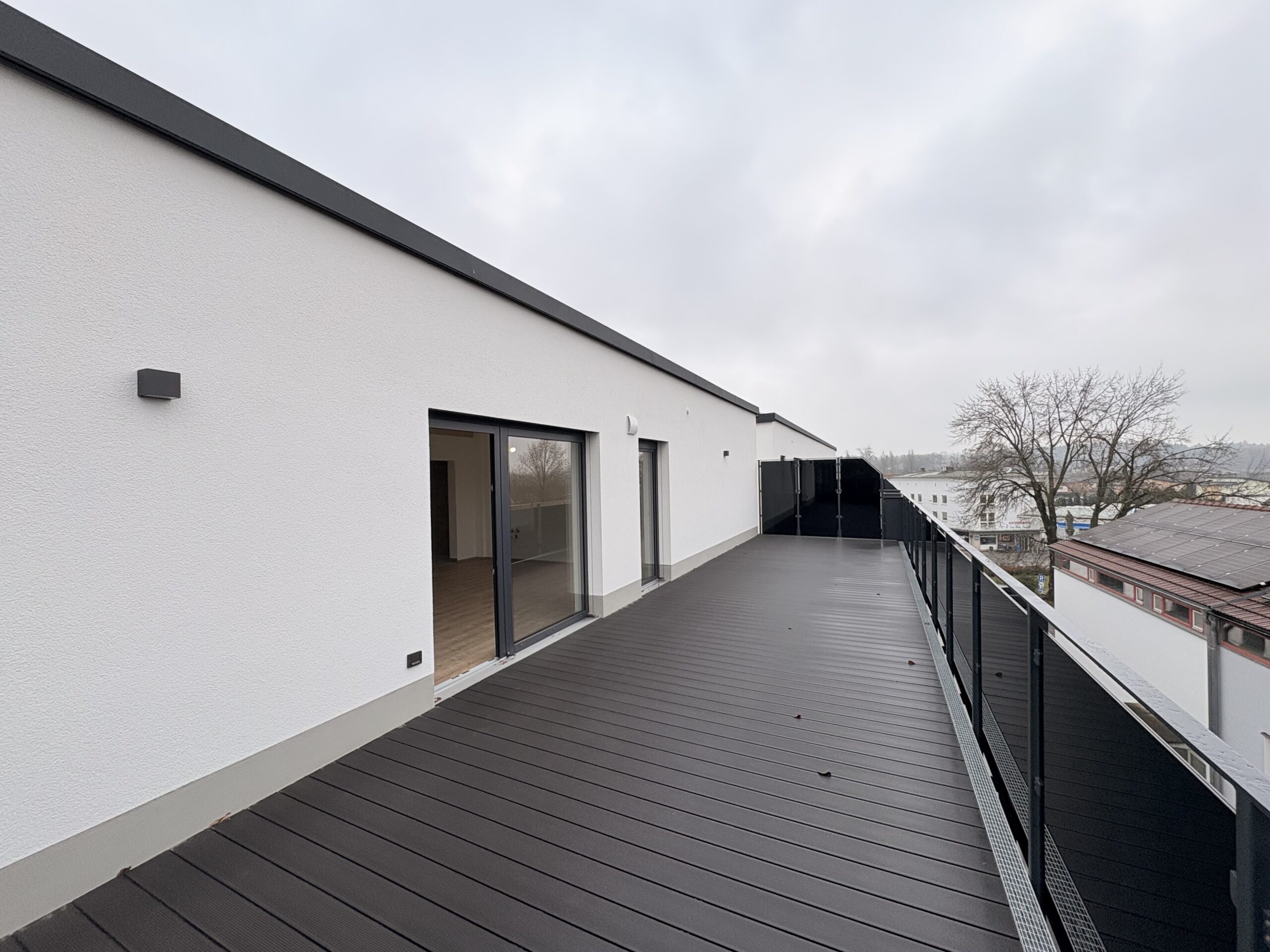 Zur Miete bieten wir Ihnen hier eine exklusive und moderne 2-Zimmer-Wohnung in Erstbezug mit stufenlosem Zugang. Die Wohnung befindet sich im Dachgeschoss eines modernen Mehrfamilienhauses und ist bereits bezugsfertig. Das gesamte Objekt wurde im Jahr 2025 in Massivbauweise errichtet und überzeugt durch eine durchdachte Raumaufteilung sowie einer hochwertigen Ausstattung. Ein besonderes Highlight ist die großzügige, ruhig ausgerichtete Dachterrasse.