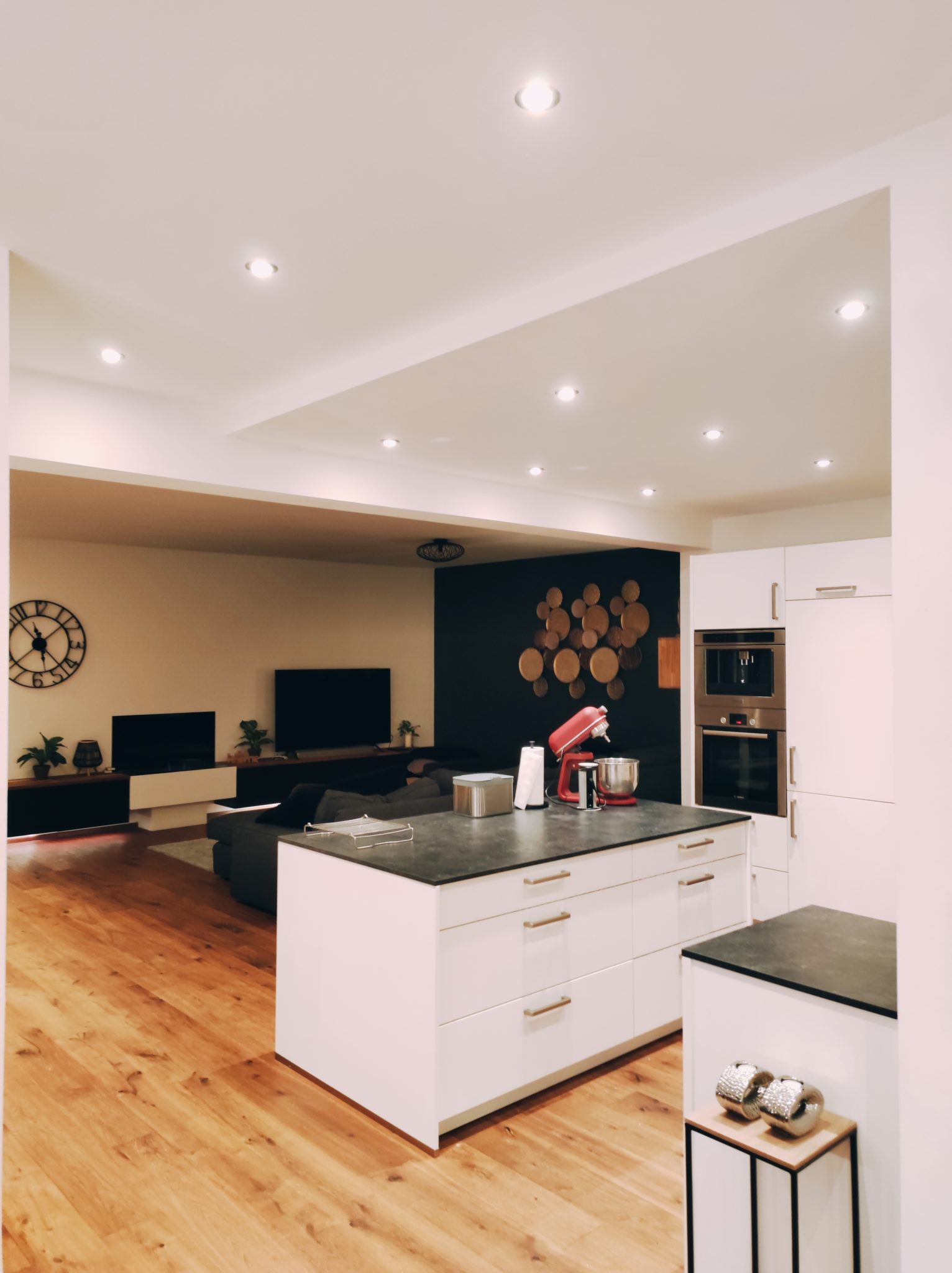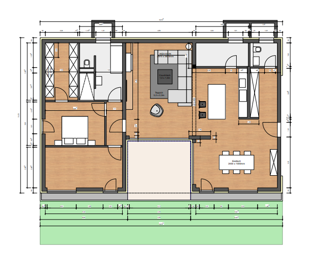Sämtlichen Wohnräume wurden mit modernem Massiveicheparkett im Landhausstil ausgestattet. Qualitativ hochwertige Materialien wurden beim Bau als auch bei der Innenausstattung verwendet und geben der Wohnung einen ansprechenden, exklusiven Charakter. Die Einrichtung besteht zum größten Teil aus Massivholzmöbel. Eine zusätzliche Smarthome-Steuerung ermöglicht das Steuern von Rollläden, Heizung und Lampen via Smartphone/Tablet.